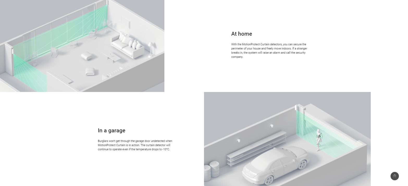 With the MotionProtect Curtain detectors, you can secure the perimeter of your house and freely move indoors. If a stranger breaks in, the system will raise an alarm and call the security company
