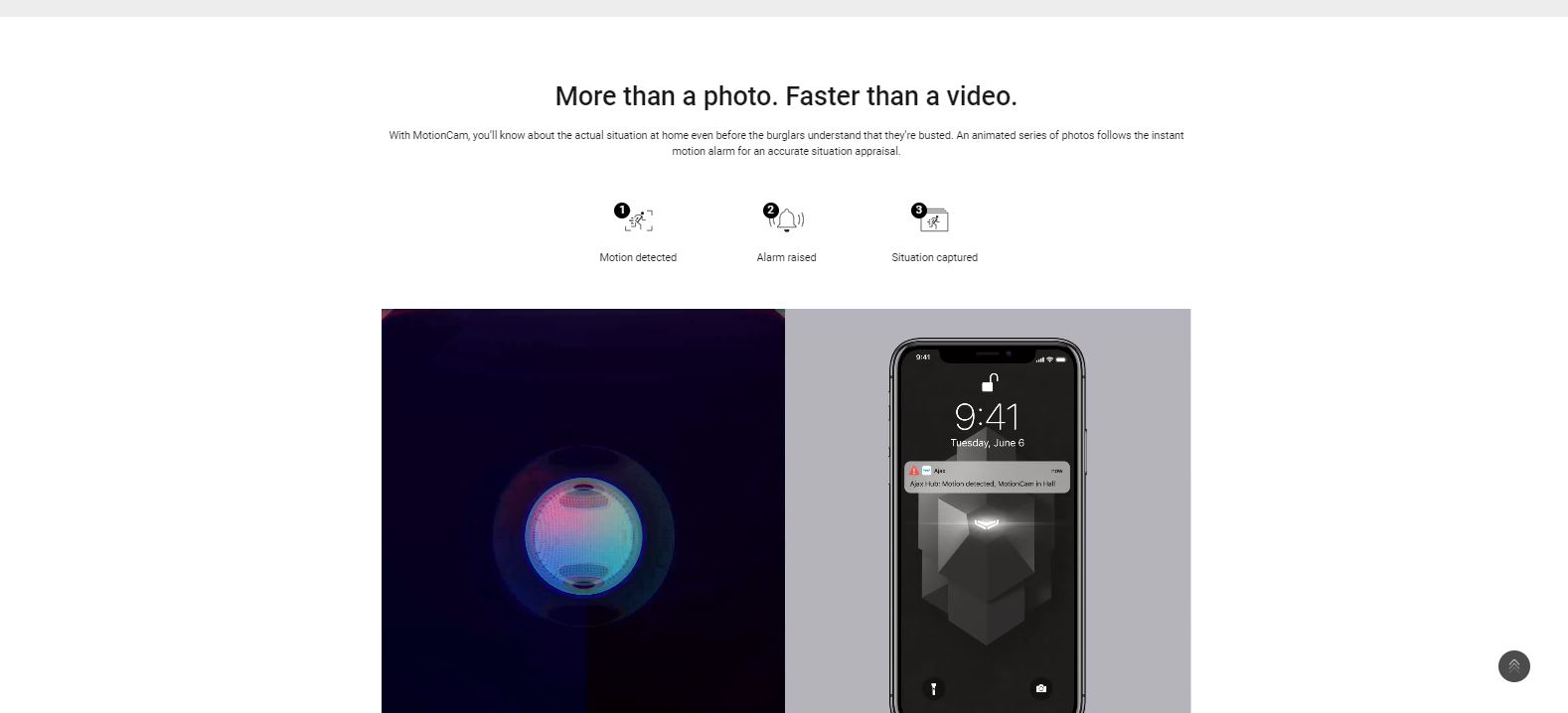 MotionCam ignores pets (up to 50 cm in height) using the SmartDetect algorithm. But if an especially curious pet manages to set off the alarm, the following photo report will confirm that the house is safe