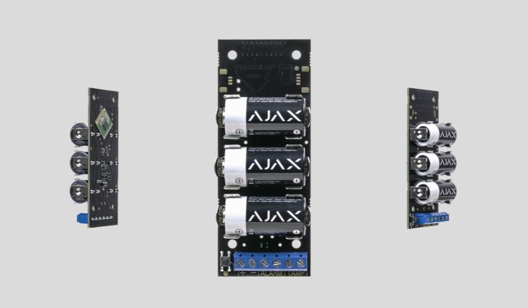 Wireless module for connection of outdoor motion detectors, IR barriers, liquid level detectors, and gas detectors, thermal relays and any third-party devices with wired output to the Ajax security system