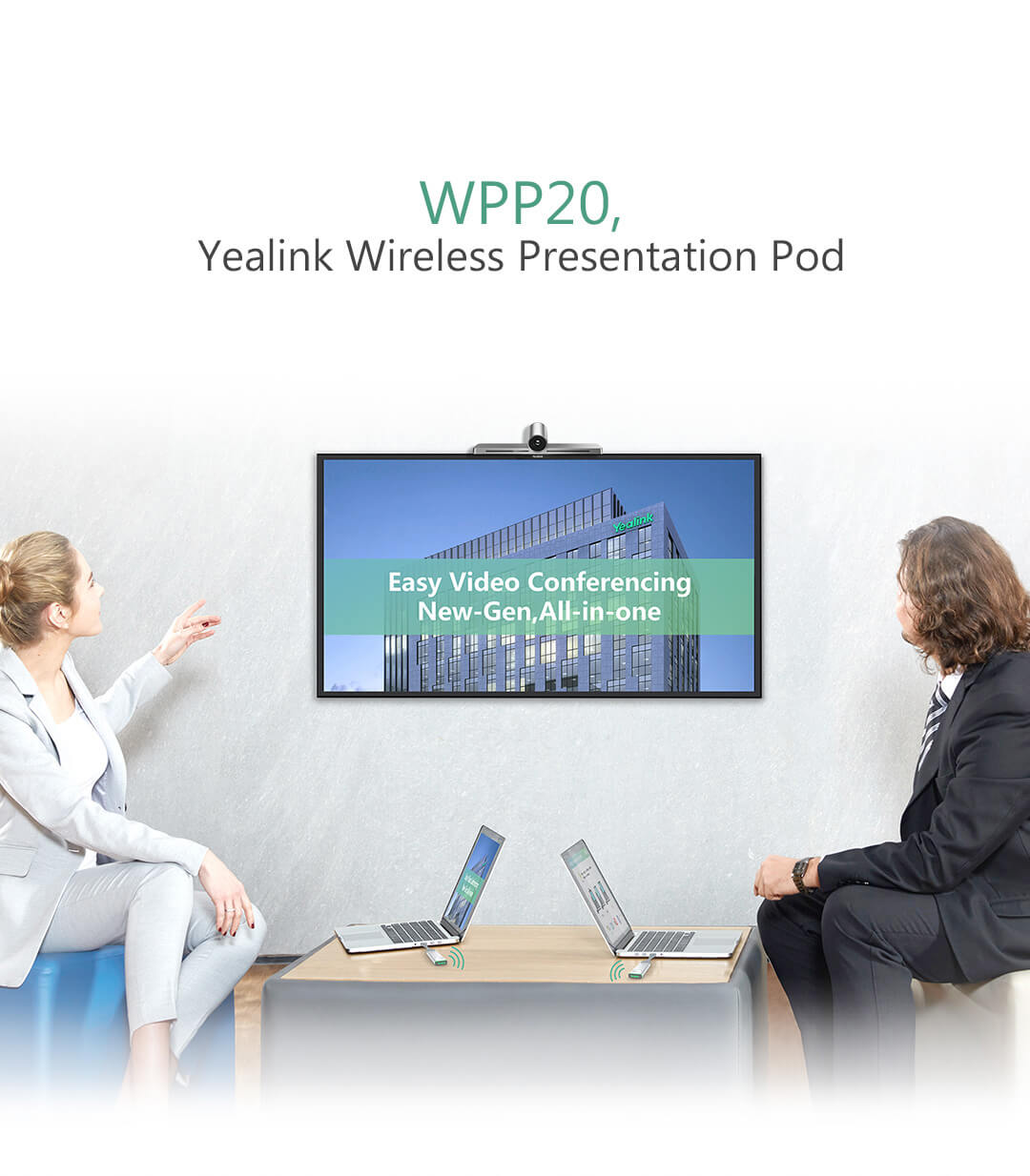 WPP20 is a wireless presentation pod that partners with the Yealink new generation video conferencing system to offer a high-quality content sharing experience. Adopting 5G Wi-Fi network connectivity, WPP20 enables content sharing on an external display with just a single tap. When paired with the Yealink video conferencing system and a touchscreen television, WPP20’s embedded meeting assistant software offers rich functionality such as inviting participants, conference recording and even reverse control of the laptop from the television screen. This rich feature set transforms any conference room into a hassle-free space for team collaboration.