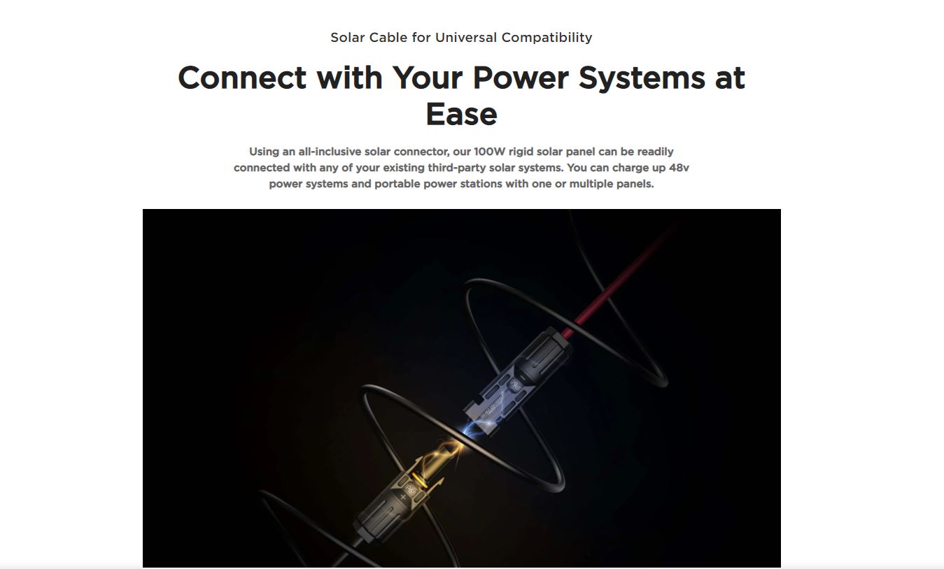 With an all-inclusive solar connector, the 100W rigid panel works with other 3rd party solar systems and power stations.
