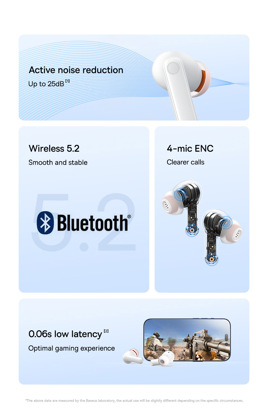 Even more possibilities: The dedicated Baseus App gives you even more possibilities. With its help you can, among other things, locate your headphones, see the actual battery status, switch modes or change button settings. Install it on your phone and get more options!