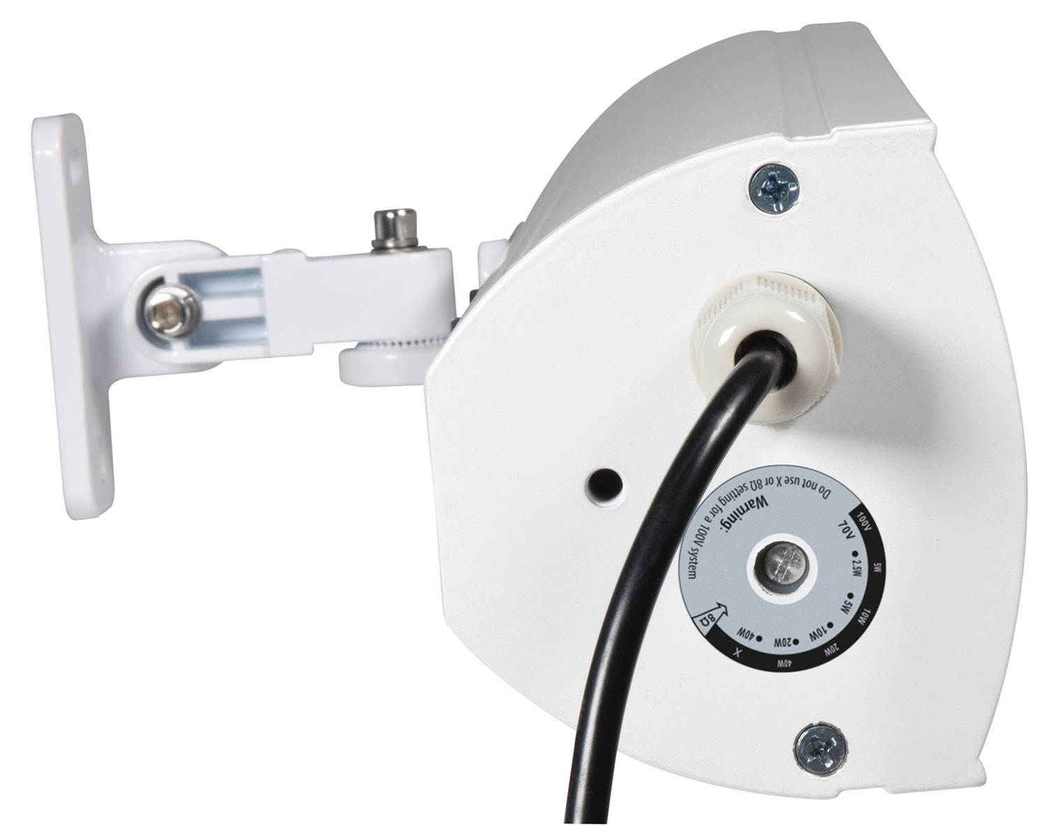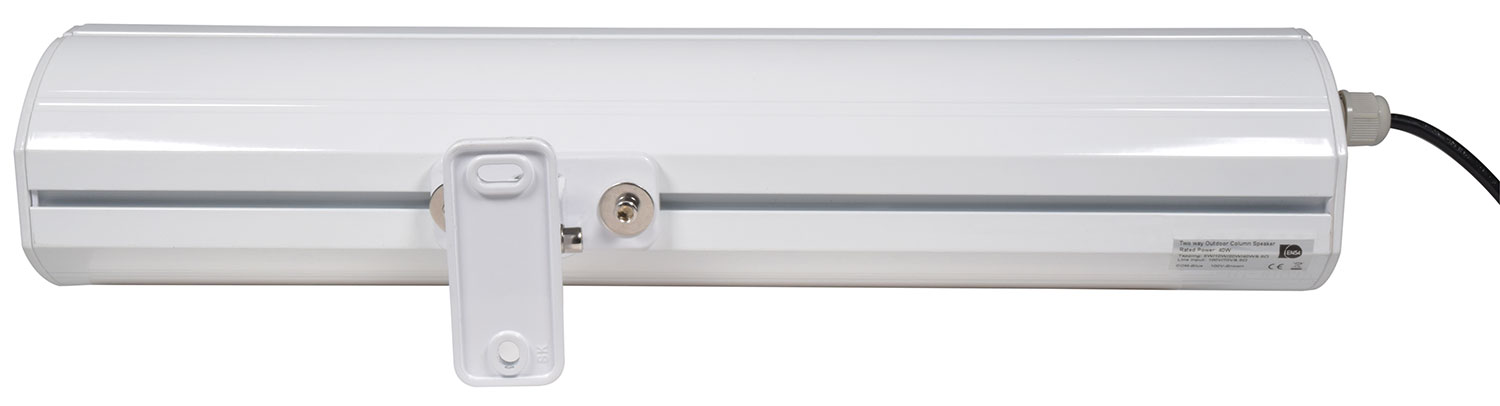 100V column speaker with a heavy-duty die-cast aluminium alloy housing & grille and fully rotatable rear wall-mount bracket. Water-resistant to IP66 for outdoor use and certified to EN54-24 for compliance with fire voice evacuation systems. Protection for use in these systems includes a fireproof cable and 95°C thermal fuse. Output has a frequency response suitable for music playback in addition to voice announcements. The F40V can be operated in 100V or 70.7V systems, as well as a standard 8 Ohm speaker. Designed to provide an uncompromised sound quality in PA systems that are relied upon for emergency and evacuation alerts.