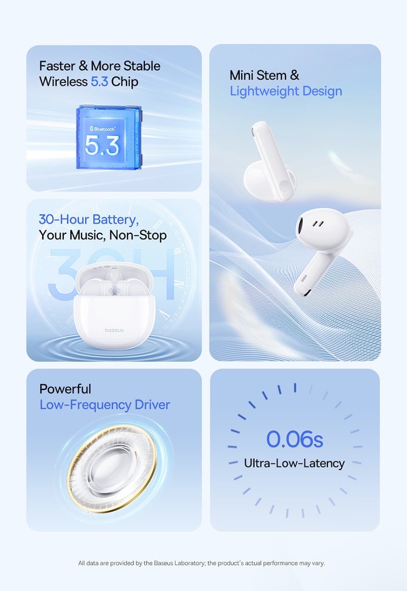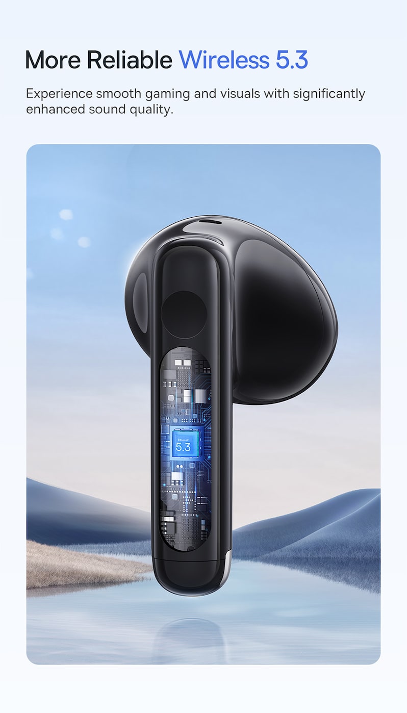 • Bluetooth 5.3: Equipped with an advanced Bluetooth 5.3 chip, these earphones provide an intelligent and stable connection. The chip enables independent and synchronized pairing of the left and right earbuds, ensuring a seamless listening experience.