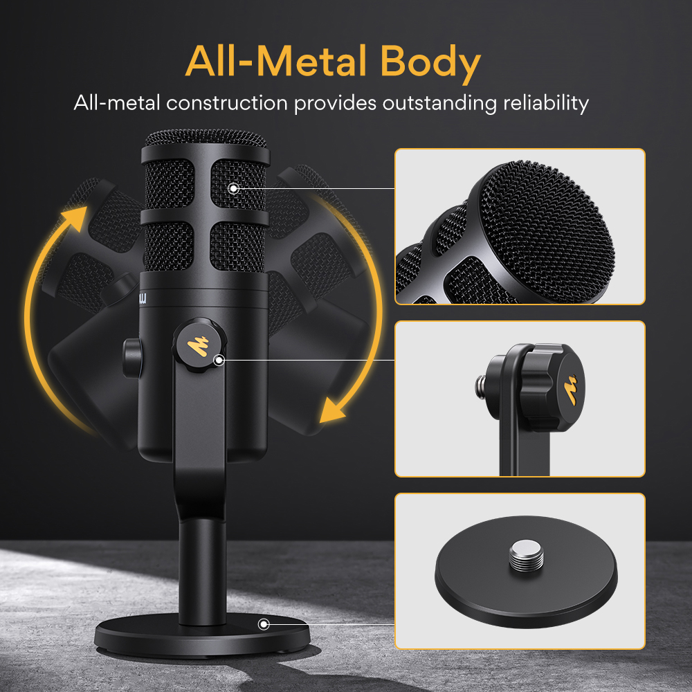 - Convenient Mic Gain Knob: This USB podcast dynamic microphone features a gain knob, that freely adjusts the microphone volume and sensitivity during the recording process to get a great sound, turns the gain down to effectively reduce room noise pick up, and turns the gain up to make your sound more attractive, great for Podcasting, Vocal recording, Zoom, Live streaming, Gaming.