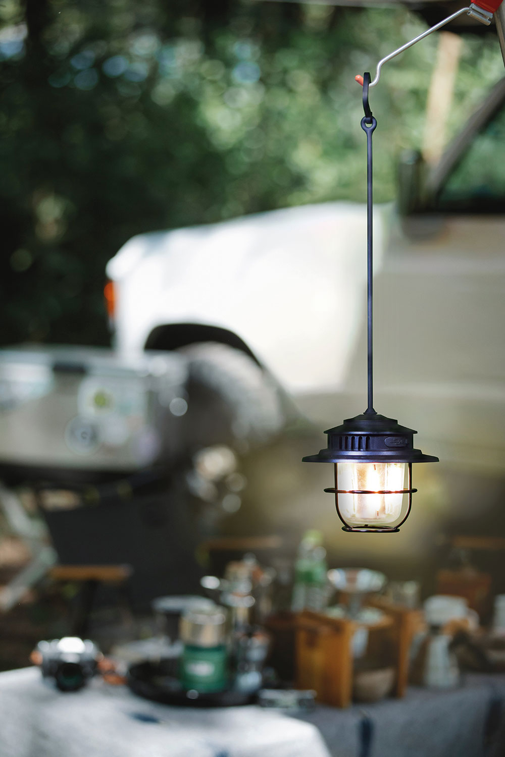Decorative rechargeable lantern for camping or sheltered outdoor use. Featuring warm white and cool white lighting modes.