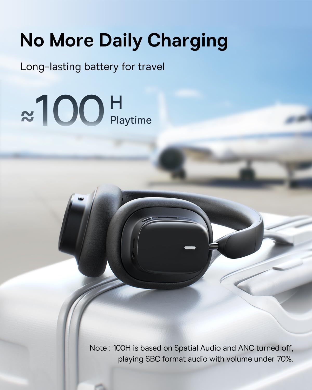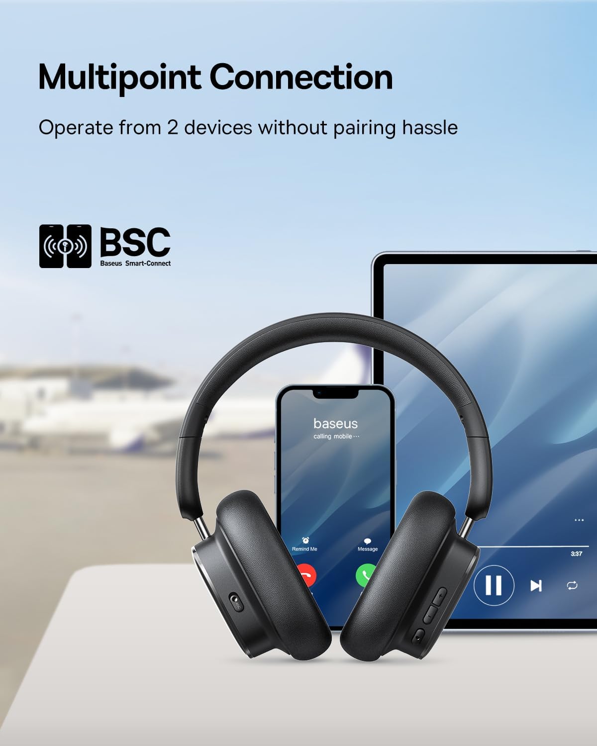• 𝑵𝒐 𝑴𝒐𝒓𝒆 𝑫𝒂𝒊𝒍𝒚 𝑪𝒉𝒂𝒓𝒈𝒊𝒏𝒈 Its 600mAh lithium-ion battery was tested to deliver up to 100 hours of playback, 2hrs fast charging gives you enough juice to listen to over 3000 songs, without the anxiety of running out of power, even on a long trip. With Baseus Bowie H1i wireless headphones, You'll never miss important calls with multi-point connection.