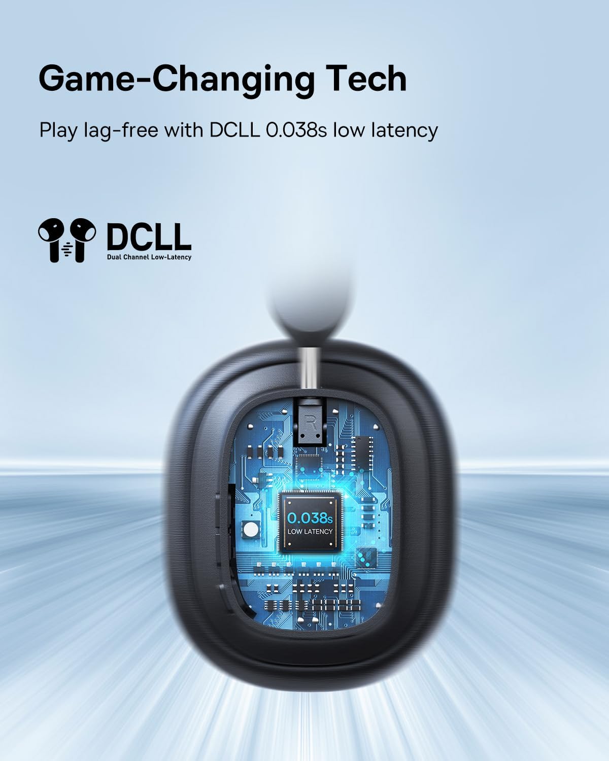 • 0.038𝒔 𝑳𝒐𝒘-𝑳𝒂𝒕𝒆𝒏𝒄𝒚 & 𝑬𝑵𝑪 𝑴𝒊𝒄 The newest Bluetooth 5.3 chip-set and low latency technology help to fully synchronize audio and video in gaming mode - experience imperceptible 0.038s low latency. The ENC mics only delivers your voice but not the noise during phone calls or communicating in online games.