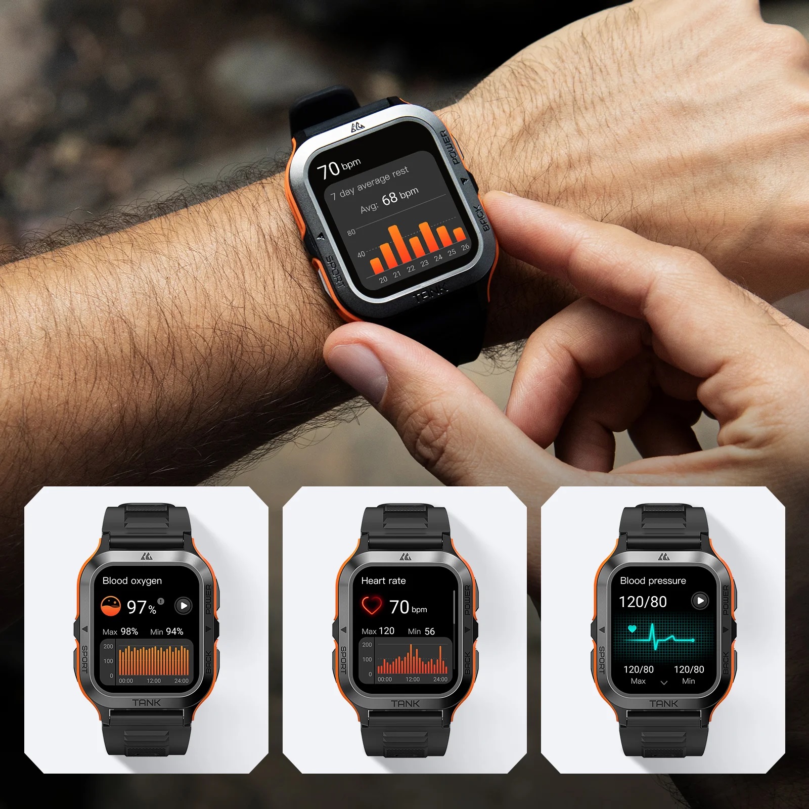 KOSPET TANK M2 also got through the demanding IP69K rating test, so that the rugged smartwatch accompanies you during day-to-day water sports and activities, such as swimming, diving, surfing, and so forth.