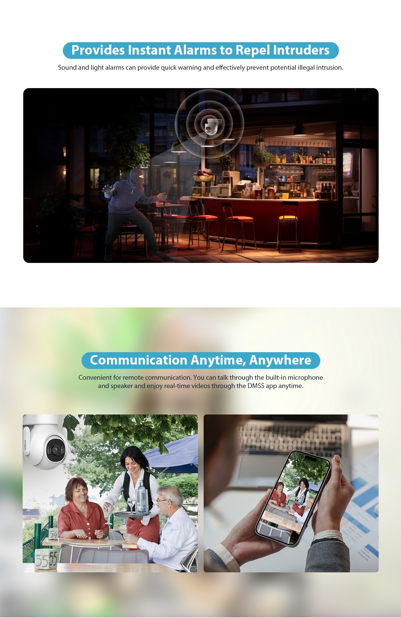 - Illumination Distance : Up to 30 m (IR) / Up to 30 m (Warm Light)