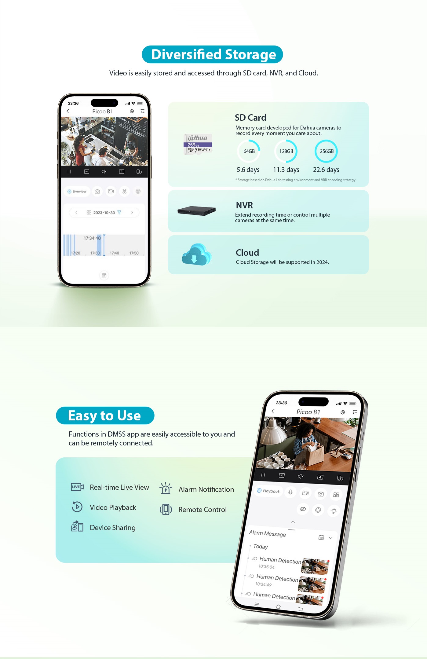 Micro SD card (support max. 256 GB) (64GB up to 5.6 days / 128GB up to 11.3 days / 256 GB up to 22.6 days ) (Using VBR Encoding )