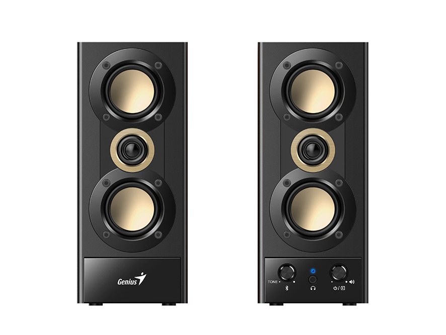 Genius's SP-HF800BT 3-way wood speakers with Bluetooth deliver clear and balanced sound, great for music, movie, or gaming. This pair of speakers has two 2-inch speaker units for mid-bass sound, and the 1-inch tweeter for clear treble sound. Total 20-watts output is perfectly for personal listening.You can connect to mobile phones, tablets, or computer through Bluetooth, 3.5mm audio jack, or headphone jack. Additional function is USB port for USB playback music function. Enhance your listening enjoyment by high and low bass separation. Suitable for personal use or gift.
