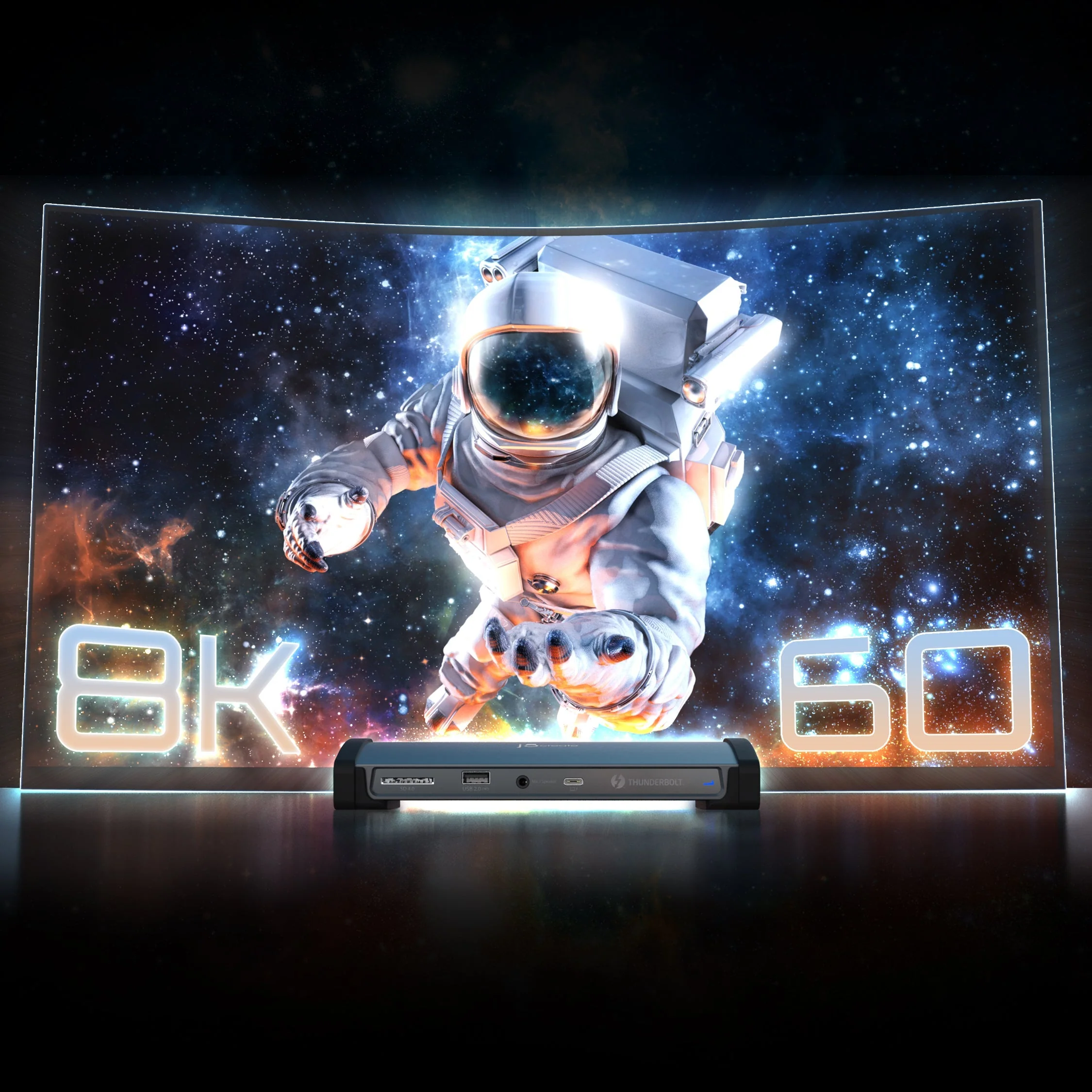 This Thunderbolt™ 4 Docking Station turns your Mac® or Windows® laptop into a full workstation with three Thunderbolt™ 4 outputs. Supports resolution up to dual display 4K or one display at 8K. Great for content creators, professionals, and enthusiast that require high resolution displays for the best visual experience.