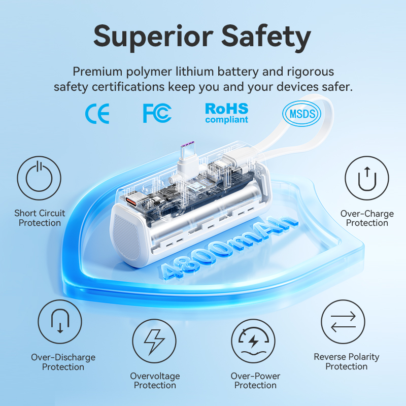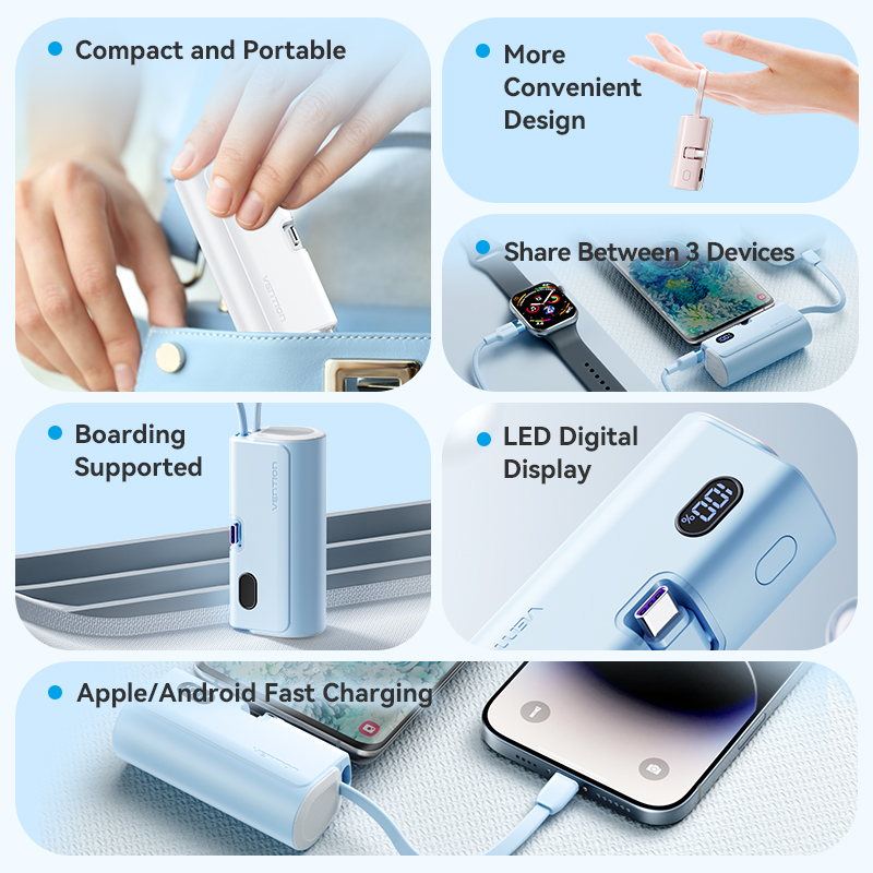 Cable Integration: Built-in foldable USB-C cable