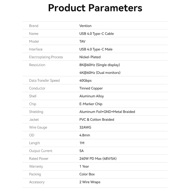Vention IT Cable USB-C 4.0 M-M 1.0m Braided Aluminium Grey TAVHF