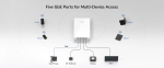 An in-wall WiFi 6 AP with a built-in 5-GbE switch ideal for covering a room or ensuite in hospitality environments. One PoE output allows for connecting an IP phone or other PSE-enabled devices.