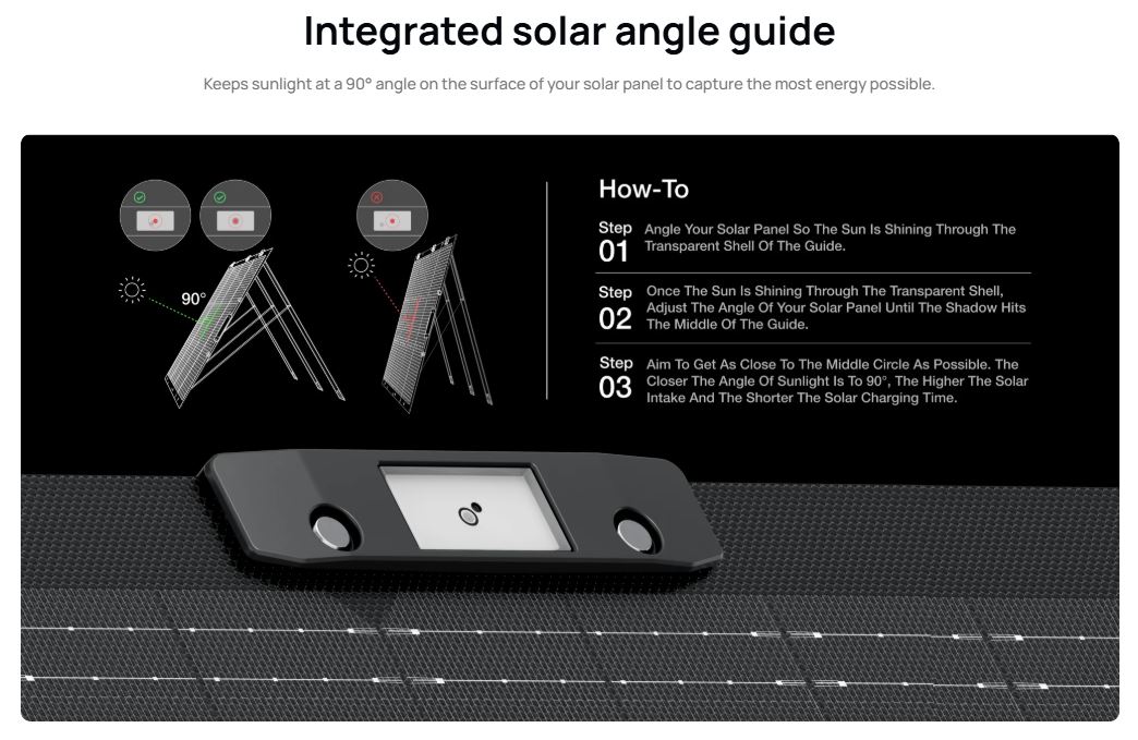 • Easy setup for Optimal Output: Integrates with a 30–60° adjustable angle bracket and integrated solar angle guide to easily align with the sun.