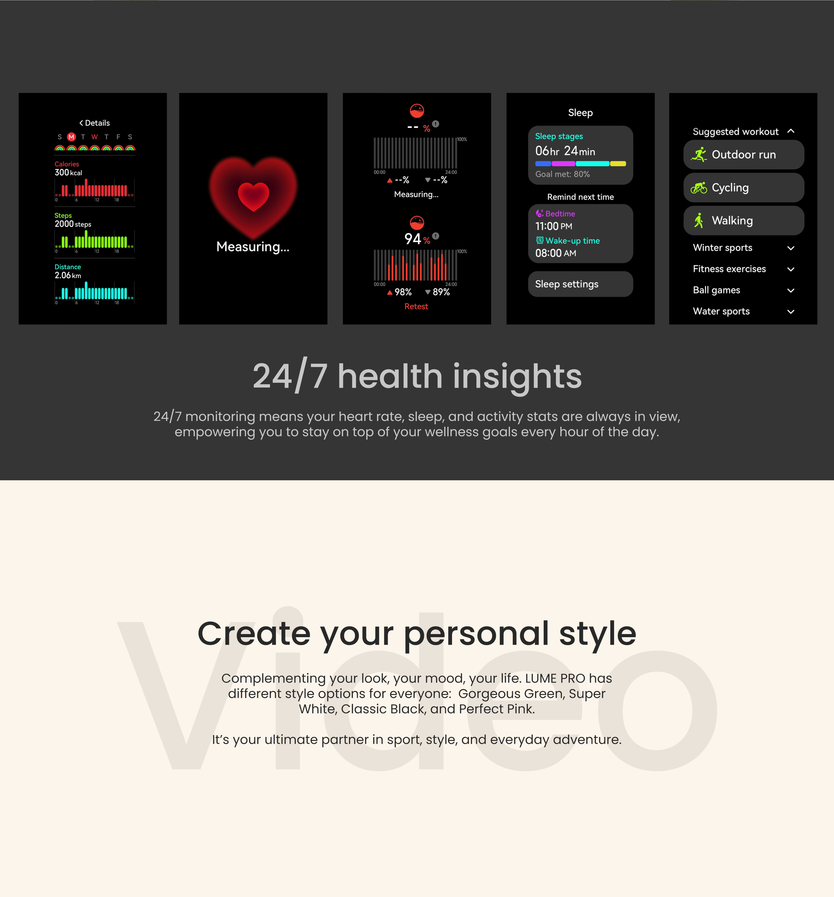 • Never miss the clarity: Levelling up your screen game, LUME PRO gives you a super bright 1.85" AMOLED display that’s built to perform in motion. The vibrant screen keeps up with your every move indoors, outdoors, and everything in between.