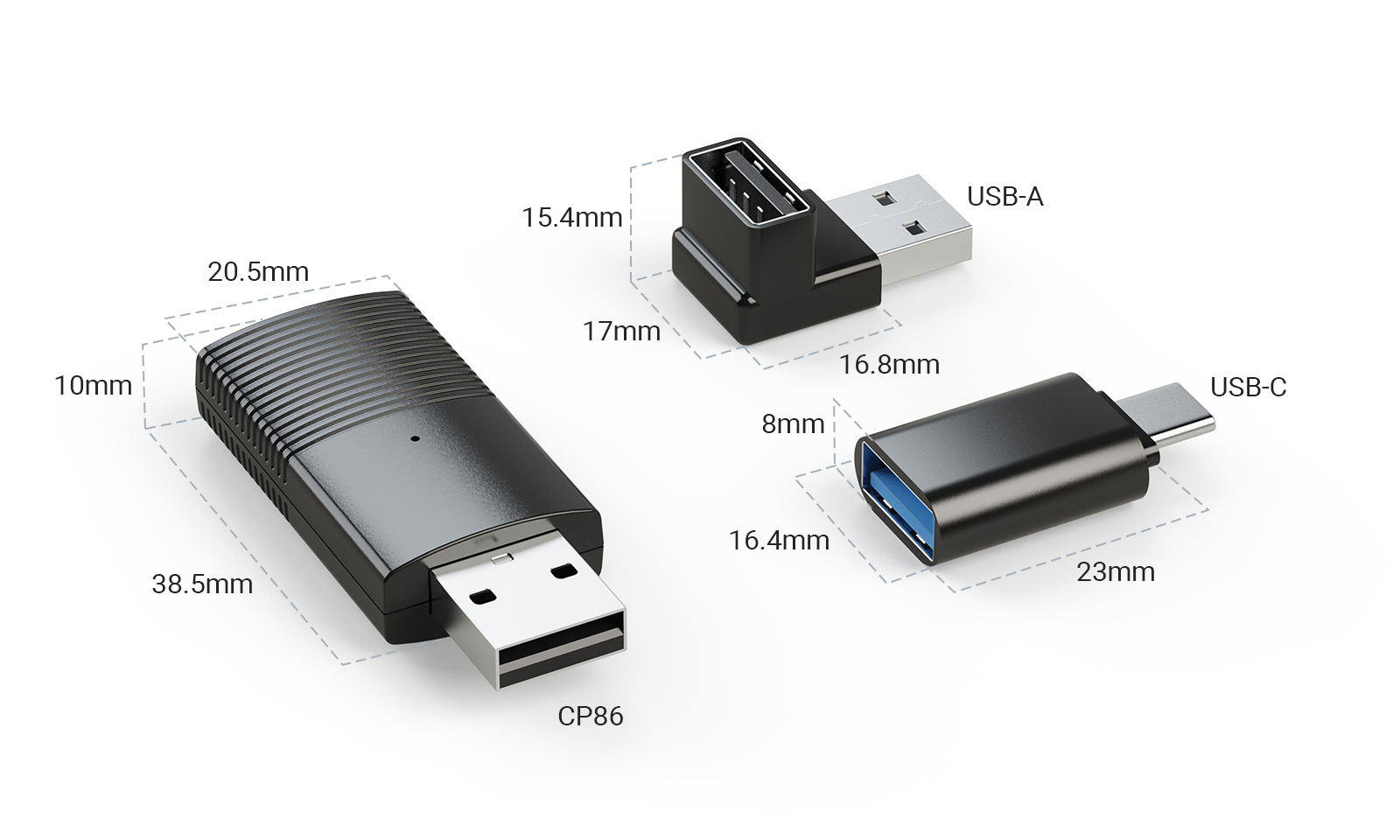 The MINIX CP86 wireless CarPlay adapter boasts an ultra-compact and sleek design, enabling you to easily install it without occupying much space in your vehicle. This CarPlay wireless adapter blends seamlessly into your vehicle's interior, offering a clean and minimalist look without clutter. Its 90-degree adapter design ensures the CP86 fits perfectly into various car settings. This versatile design allows for easy installation and is compatible with vehicle configurations, providing a convenient plug-and-play experience.