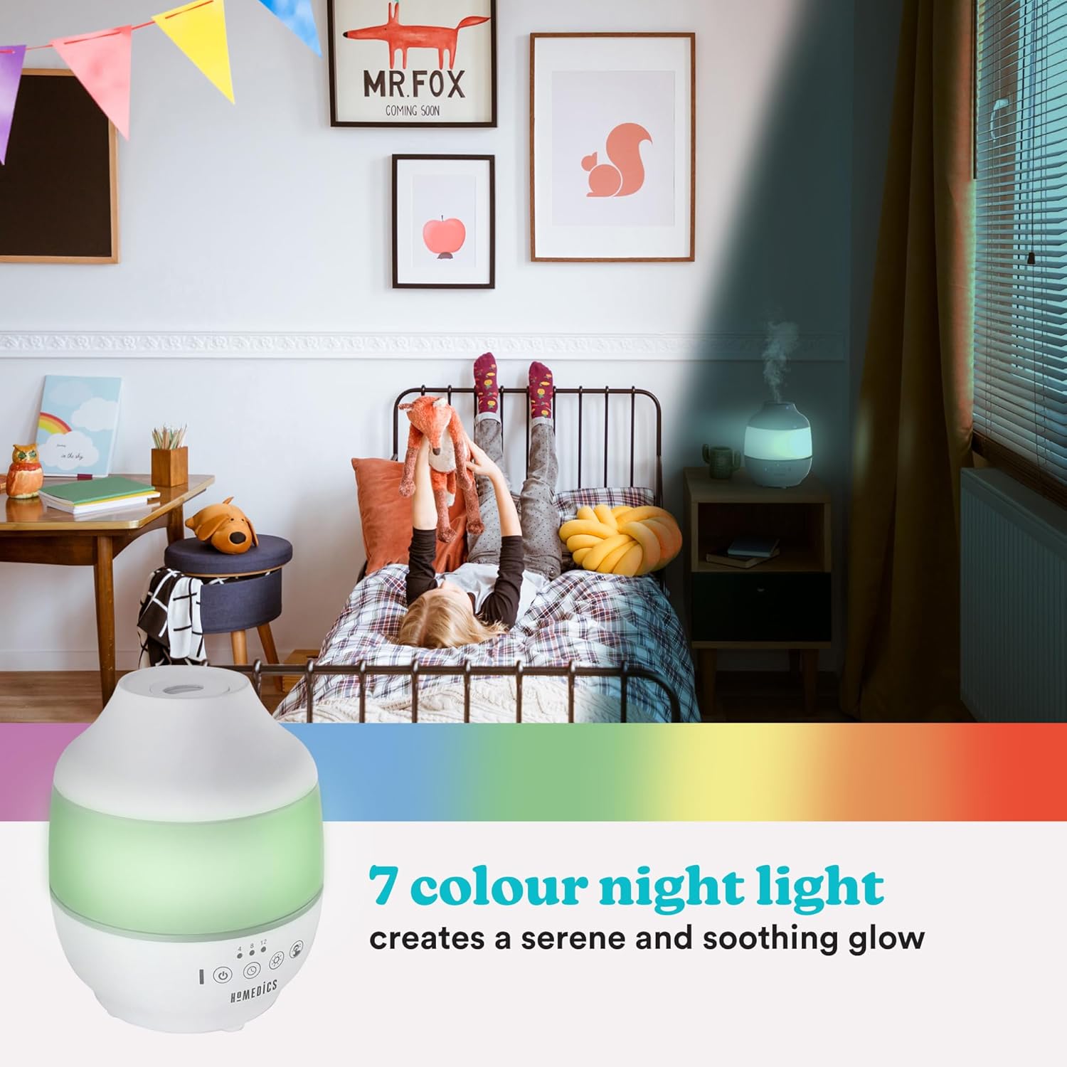 Special Options:Add aromatherapy by using the included essential oil pads; built-in 7-color night-light offers soothing glow