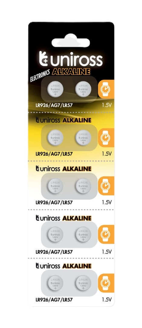 - Uniross Alkaline Coin Cells Battery AG07, available in a convenient blister of 10, provide reliable performance with steady voltage output, ensuring a dependable and stable energy supply for a range of small electronic devices