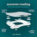 STRONG & SCRATCH-RESISTANT: These digital scales feature 5mm scratch resistant tempered safety glass for strength and durability. The 290x290mm curved glass surface and anti-skid feet provide stable footing while protecting your bathroom floor