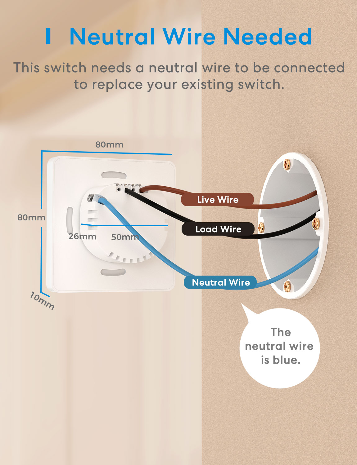 • Neutral wire (blue wire) required.
