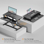 Seamlessly transform a traditional desk into an ergonomic sit-stand workstation with the DWS37-01 Desk Converter, easily switching between sitting and standing throughout the workday. Premium gas spring delivers dynamic height adjustment with improved stability. The two-tier design maintains keyboard and display placement whether sitting & standing. Easy squeeze handle adjusts heights in a snap