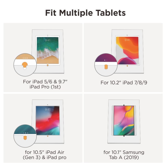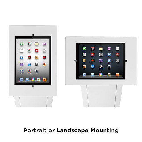 With lockable enclosure and high-quality steel construction, the PAD32-01 freestanding kiosk is a secure, stylish and affordable choice for using tablets to convey information or advertising in a public setting. Landscape or portrait enclosure mounting is available to meet different viewing needs and soft EVA pads inside the enclosure protect your device from scratches and marring. The smooth front panel offers plenty of additional space for custom branding and graphics. Lockable lower cabinet space is available for power strips, cables and other accessories. Cable management keeps wiring organized and protected.