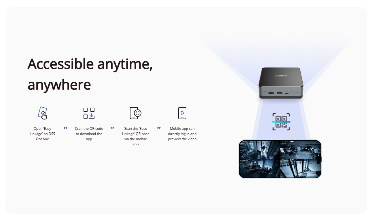 DSS OneBox is an all-in-one workstation that comes with a pre-installed license, enabling immediate use right out of the box — no setup required, no extra server required. With an integrated security center, access and visitor management, vehicle entrance, video intercom, and attendance features, DSS OneBox is designed for small and medium-sized business environments, such as offices, retail stores, and warehouses