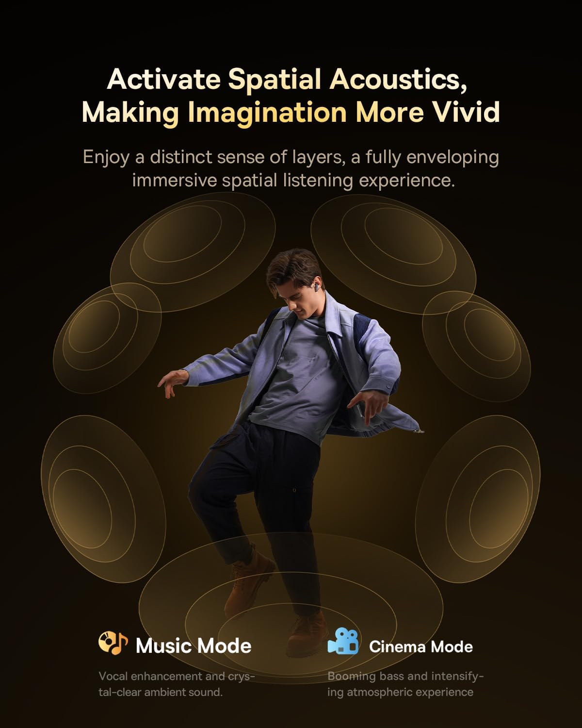 Spatial Acoustics with Dual Modes – Choose Music Mode for crystal vocals or Cinema Mode for immersive, thunderous bass. Powered by BISA tech.