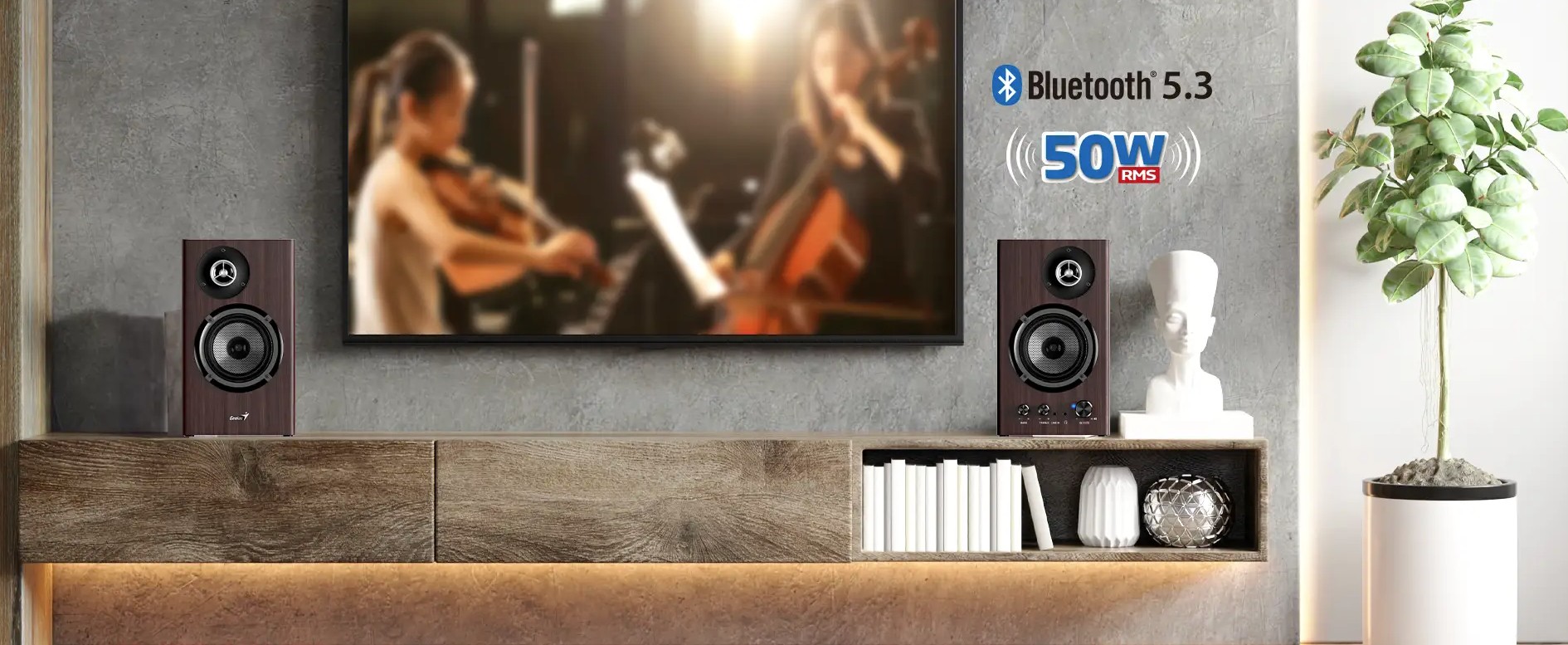 Genius SP-HF1812BT high power 50W two-way Bluetooth speaker is designed for music lovers with high fidelity and low distortion, high and low frequency separation. In addition to the beautiful and clear sound, the crisp high and deep bass can be adjusted according to personal preference without being dull. The SP-HF1812BT provides Bluetooth wireless and 3.5mm connector, which can be connected to mobile phones, tablets, computers, and TVs. Whether it is easy listening, pop music, classical music, or exciting movies and games, immersing yourself in beautiful sounds is a great enjoyment for your ears.
