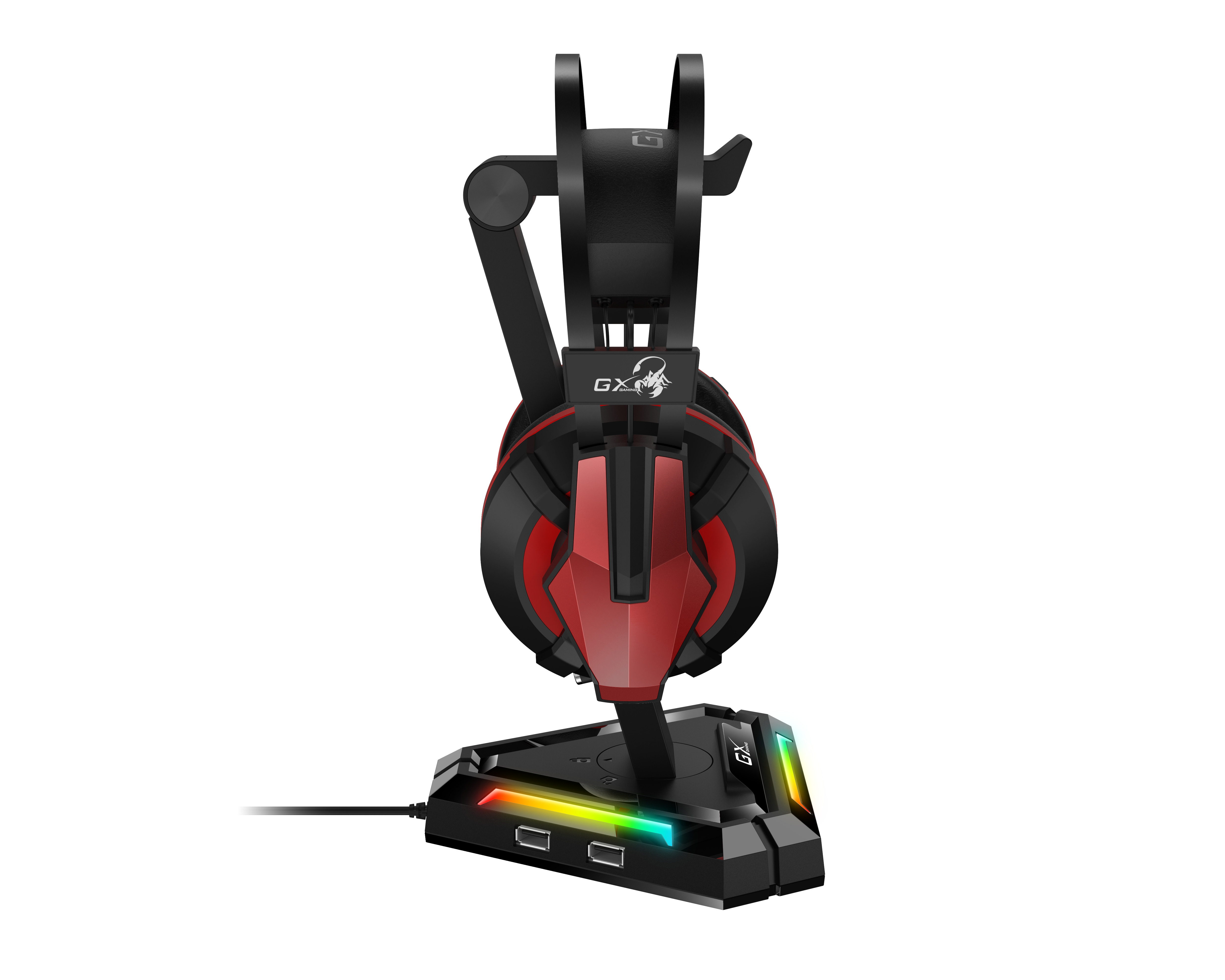 The GX-UH100 seamlessly combines a headphone stand with a power strip for easy headphone storage, device charging, and efficient desk organization. It offers 8 dynamic RGB lighting modes, featuring multi-color flowing effects and single-color breathing modes, creating an immersive gaming atmosphere