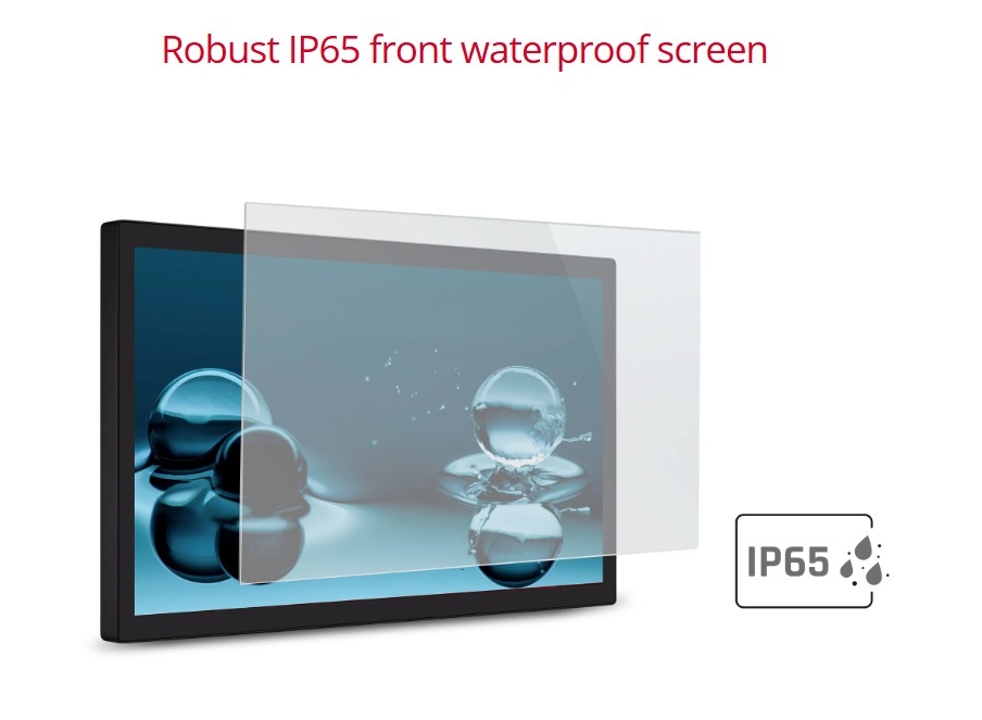 - Durable and scratch-resistant IP65 front touchscreen