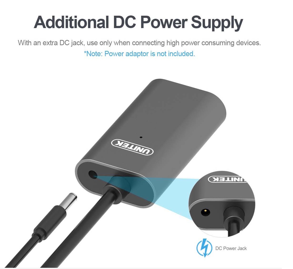• With an extra DC jack, use only when connecting high power consuming devices. * Note: Power adaptor is not included.
