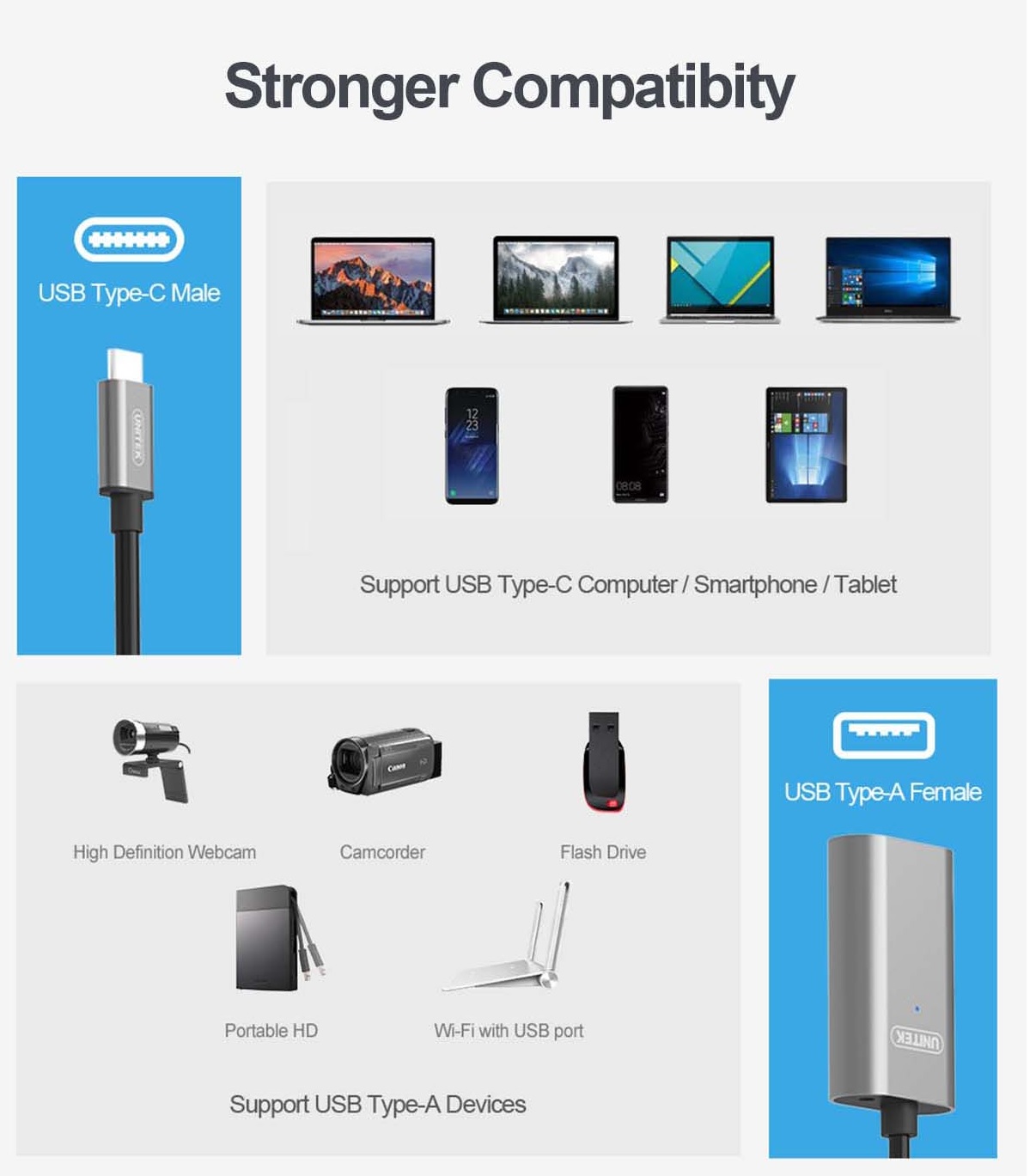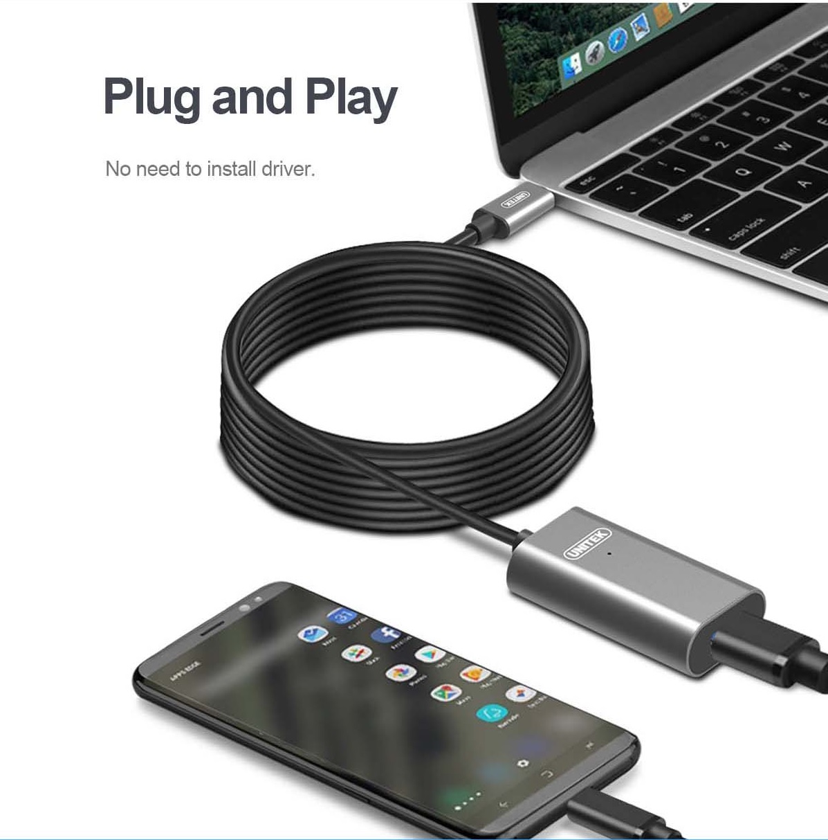 Unitek U304A USB3.1 USB-C Male to USB-A Female Active Extension Cable 5m